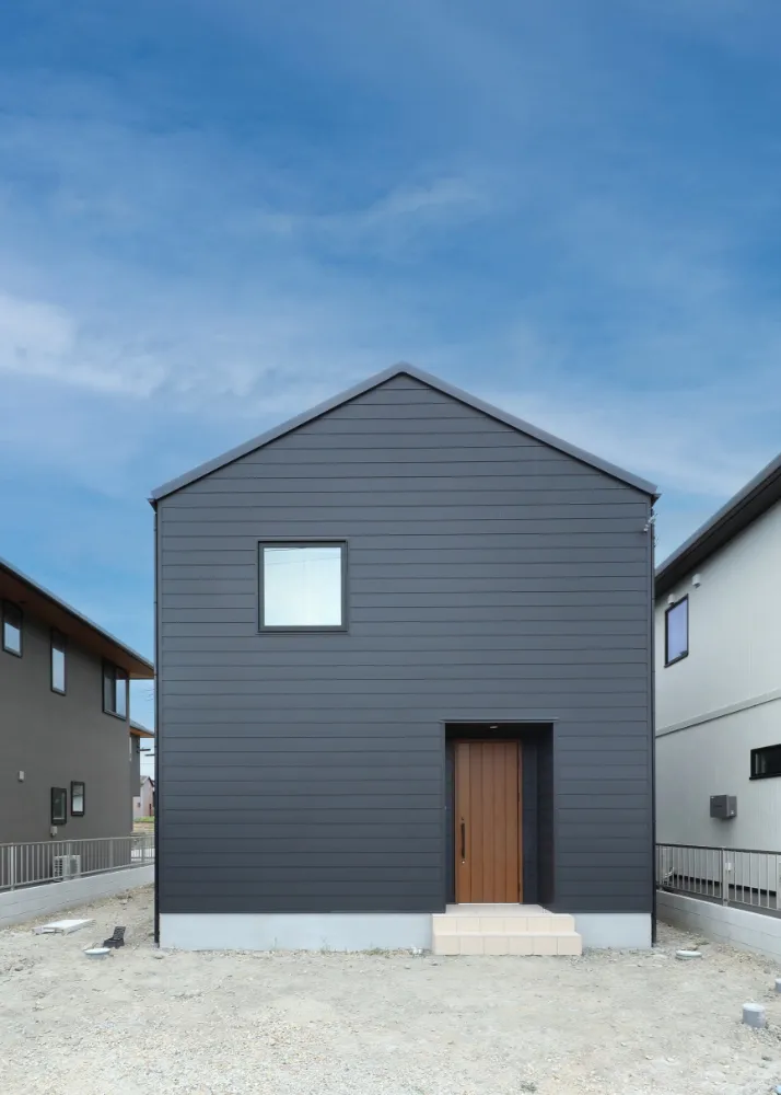 温もりを添える「木の玄関ドア」 クールな外装の中に、一点、木目の質感をプラス。家族やゲストを優しく迎え入れるアクセントに。