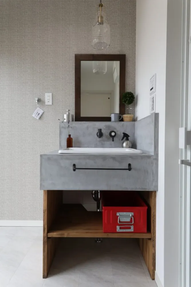 「魅せる」と「隠す」の絶妙なバランス 手元を隠す腰壁でスッキリ見せつつ、お気に入りの雑貨やグリーンが映える、暮らしを楽しむステージのような場所。